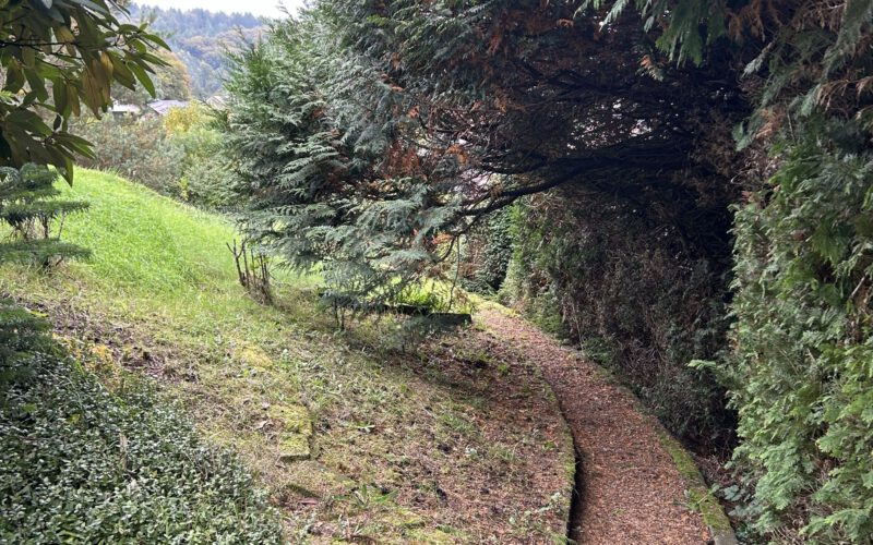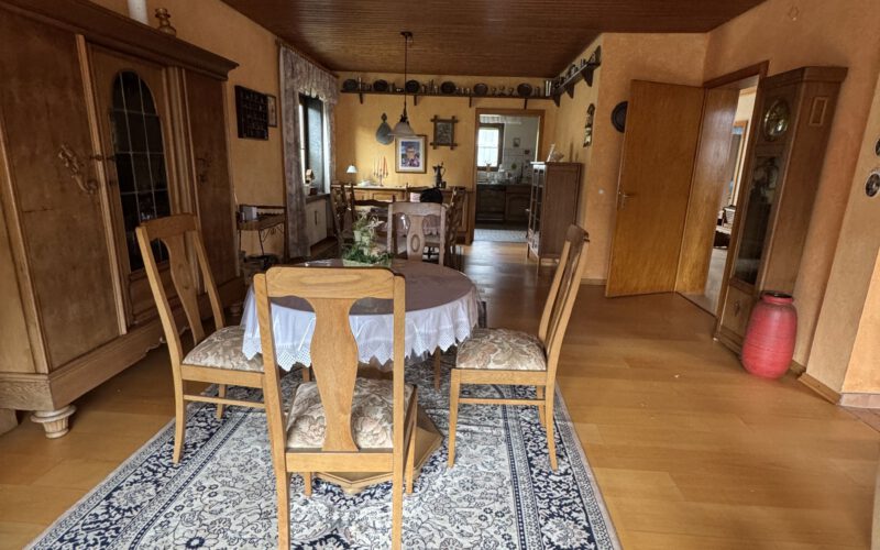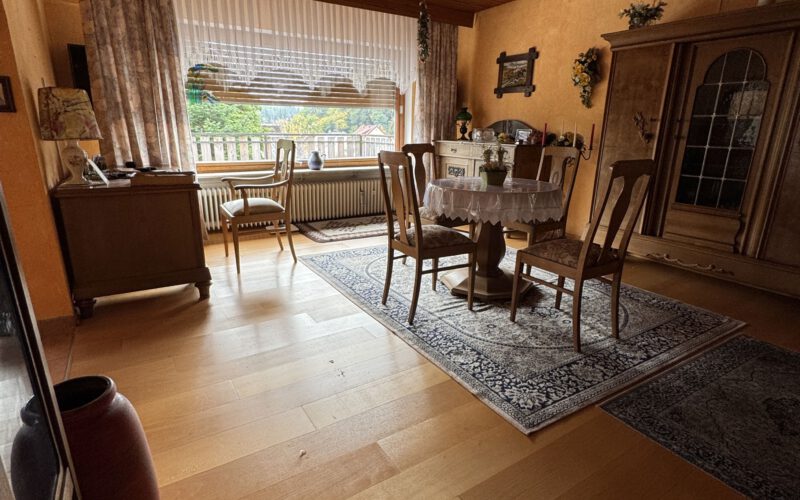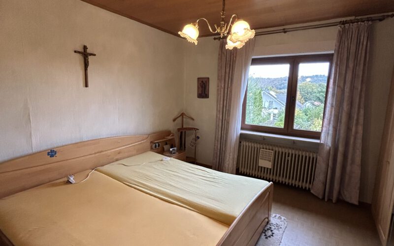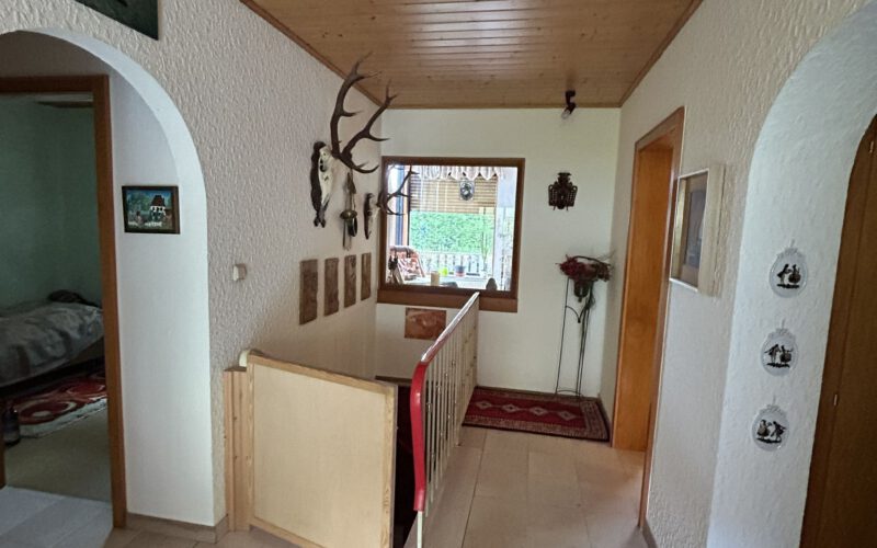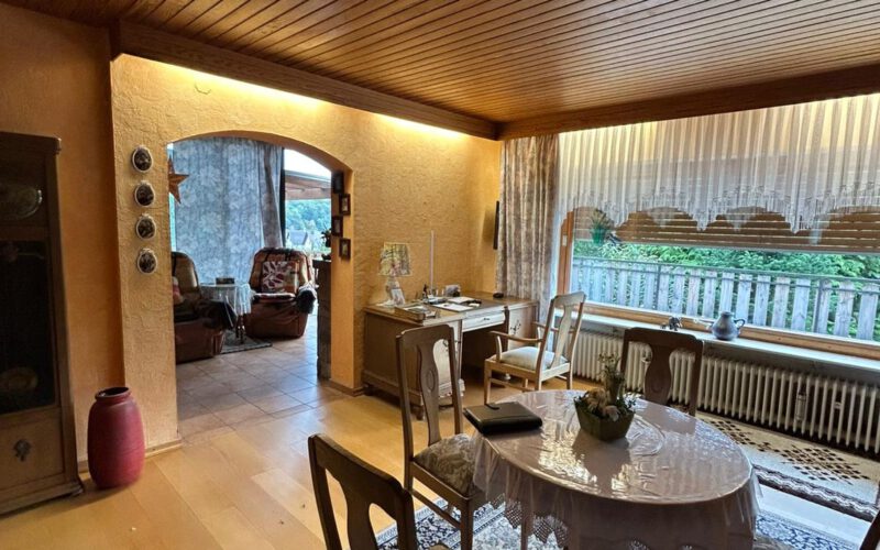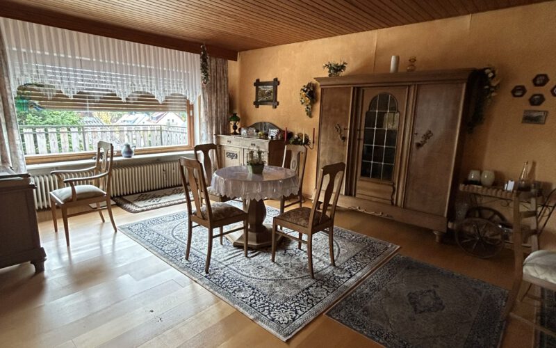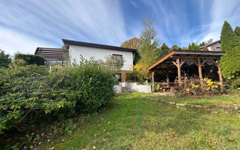 Das freistehende Einfamilienhaus ist komplett unterkellert und befindet sich in einer ruhigen Seitenstraße in Waldrandlage.