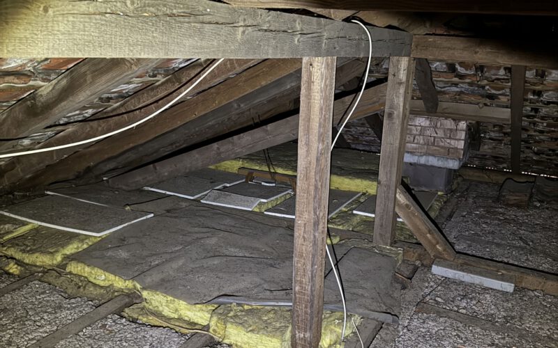 Die Geschossdecke auf dem Dachboden und dem Wohnzimmer erhielt teilweise eine 100 mm Dämmung.