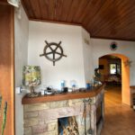 In dem Wintergarten befindet sich ein offener Kamin. Hier ist ein direkter Zugang auf die umlaufende Terrasse möglich.