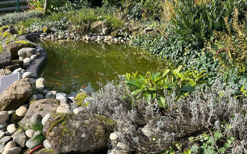 Ein überdachter Freisitz im Garten bietet alles zur Entspannung von einem arbeitsreichen Arbeitstag.