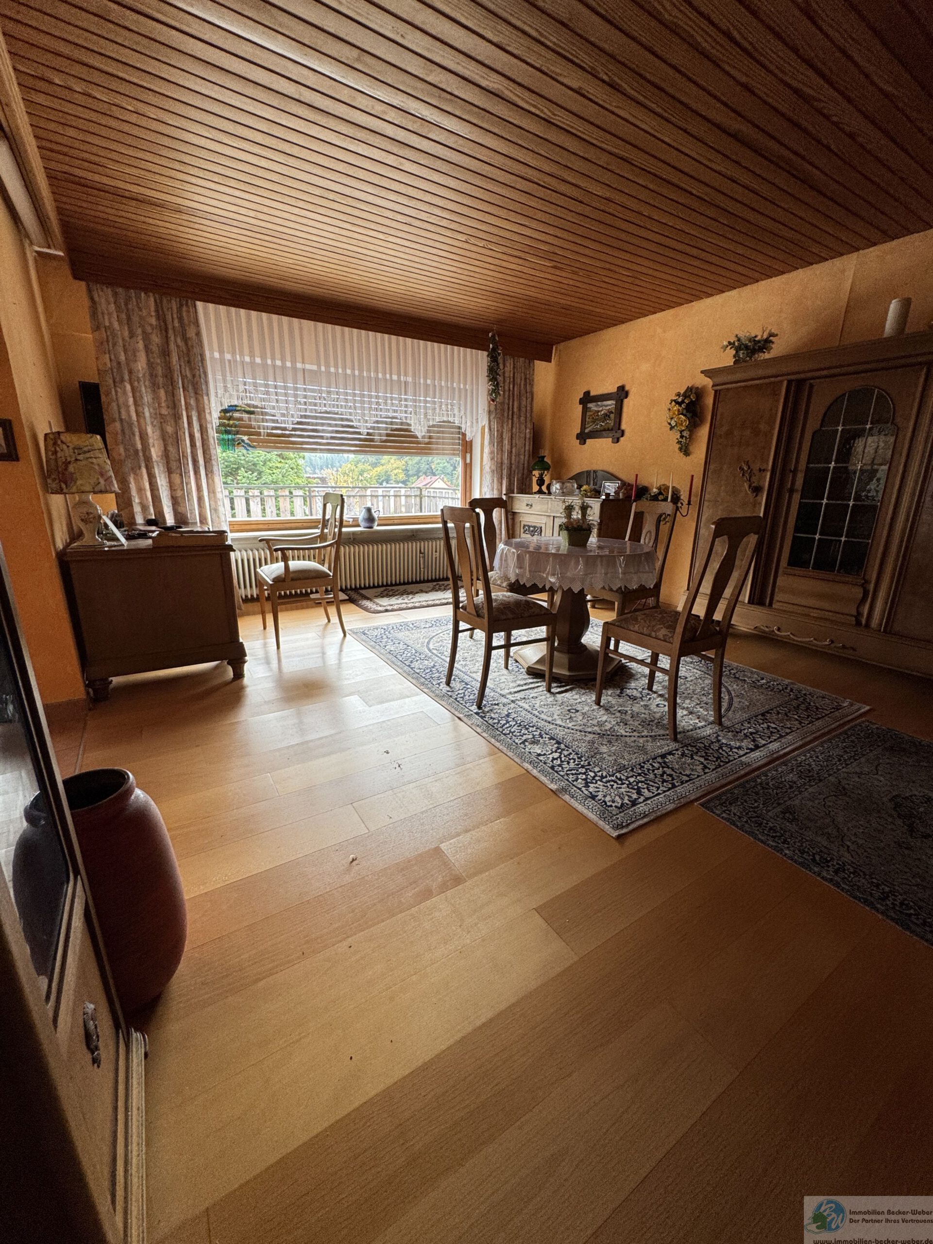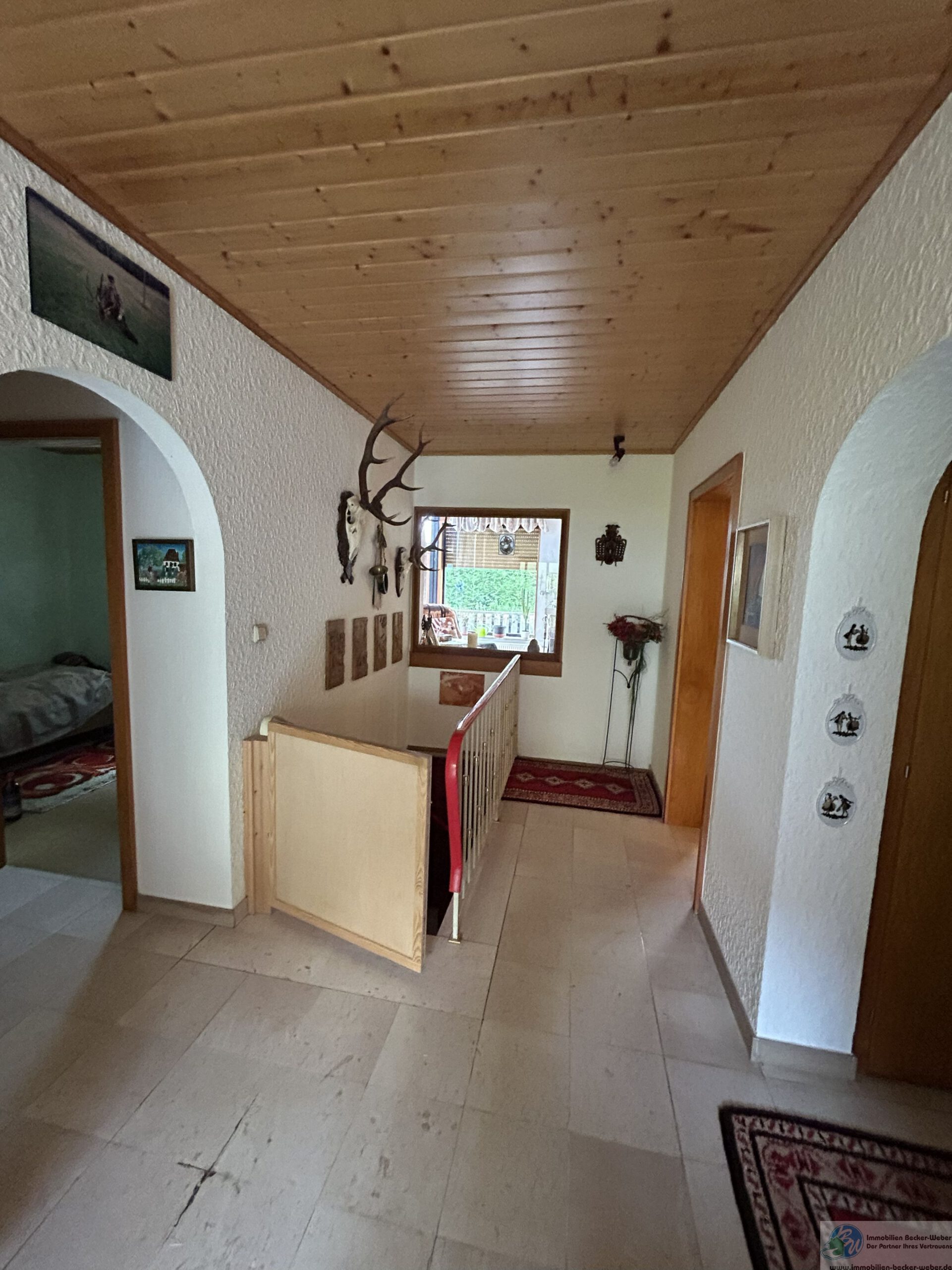 Das freistehende Einfamilienhaus ist komplett unterkellert und befindet sich in einer ruhigen Seitenstraße in Waldrandlage.