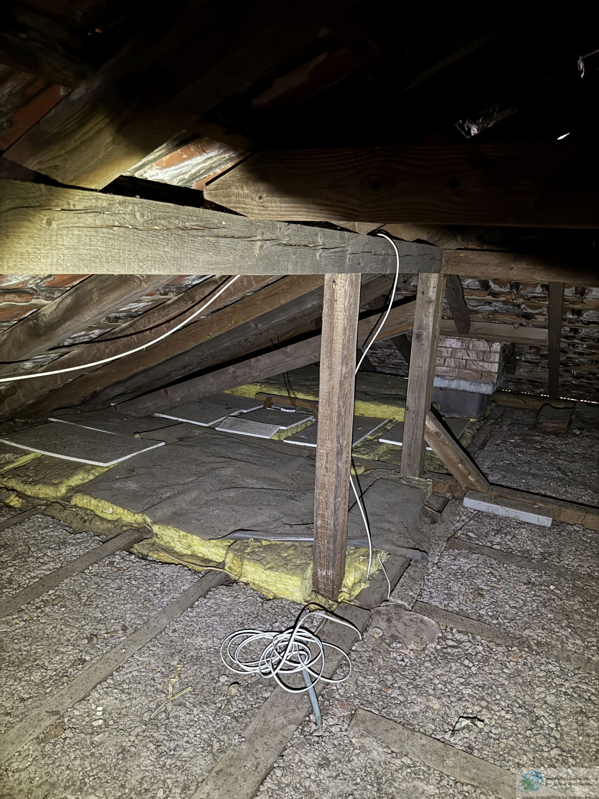Die Geschossdecke auf dem Dachboden und dem Wohnzimmer erhielt teilweise eine 100 mm Dämmung.