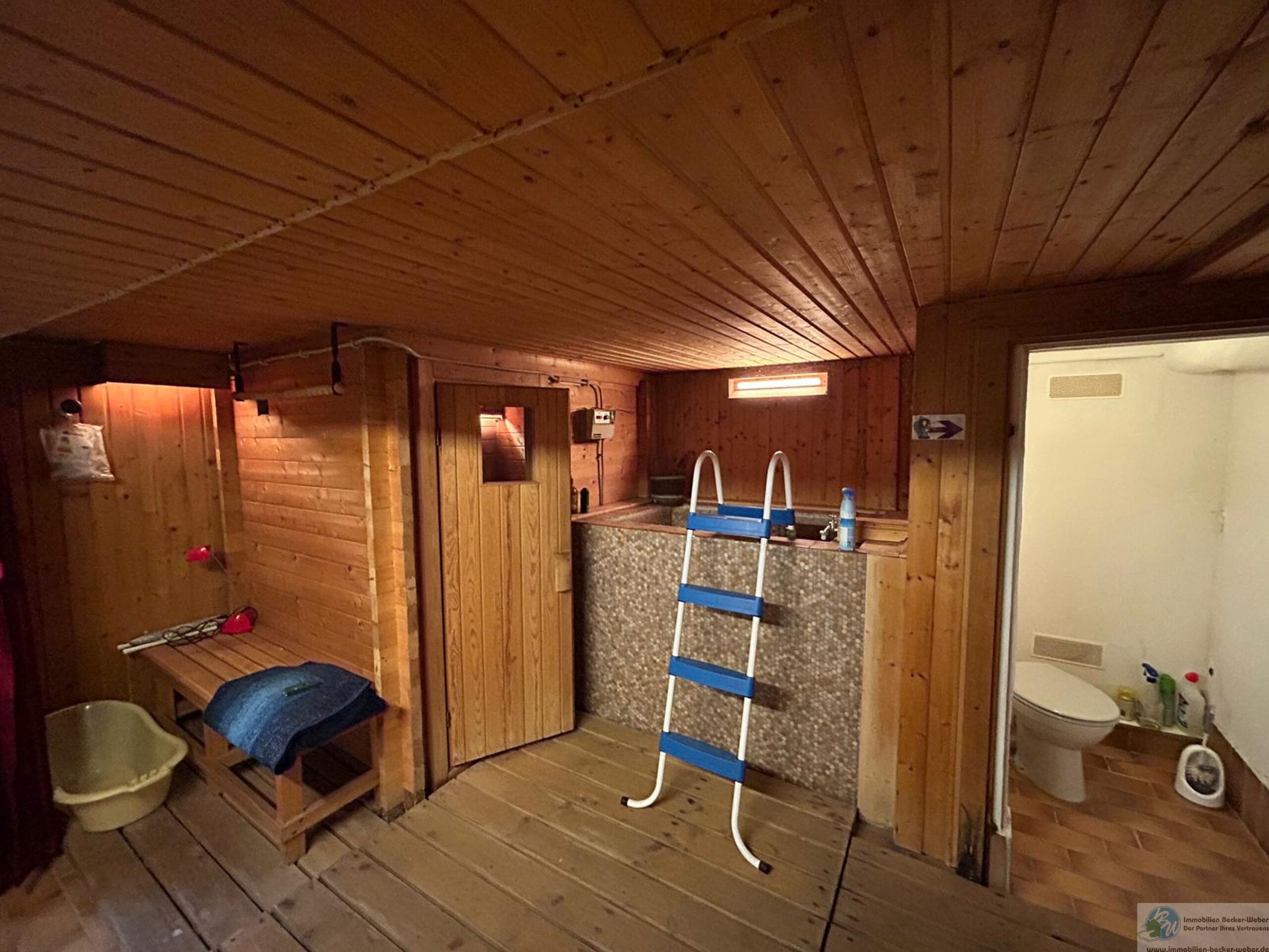 Im Keller des Hauses befinden sich vier Kellerräume, eine Kellerbar, ein Heizraum mit den Öltanks, ein HWR mit Sauna und Tauchbecken, ein WC und die innenliegende Garage.